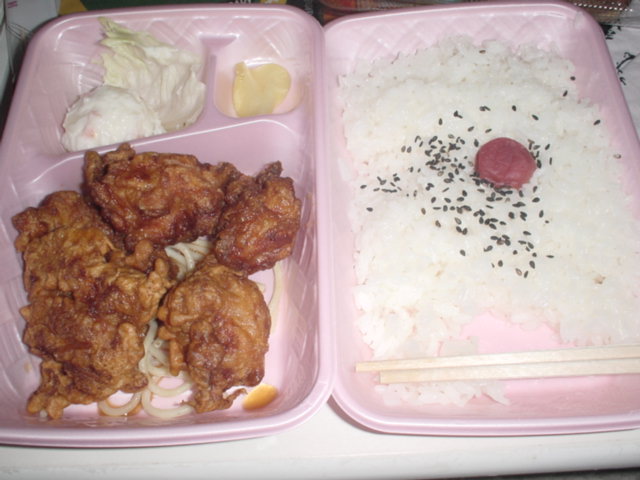 唐揚げ弁当 410円 (注文後揚げて御飯も入れてくれる)