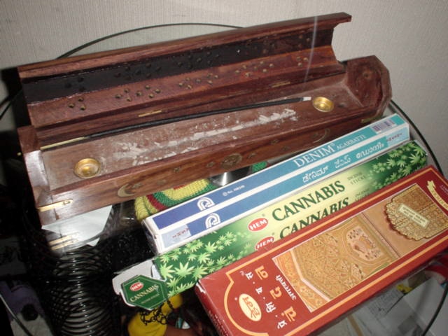 お香は手前から、チャンダン、カンナビス、デニム。
