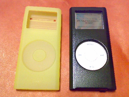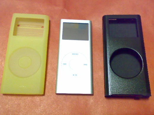 左の黄色いのが使用中のipod nanoのシリコンケース